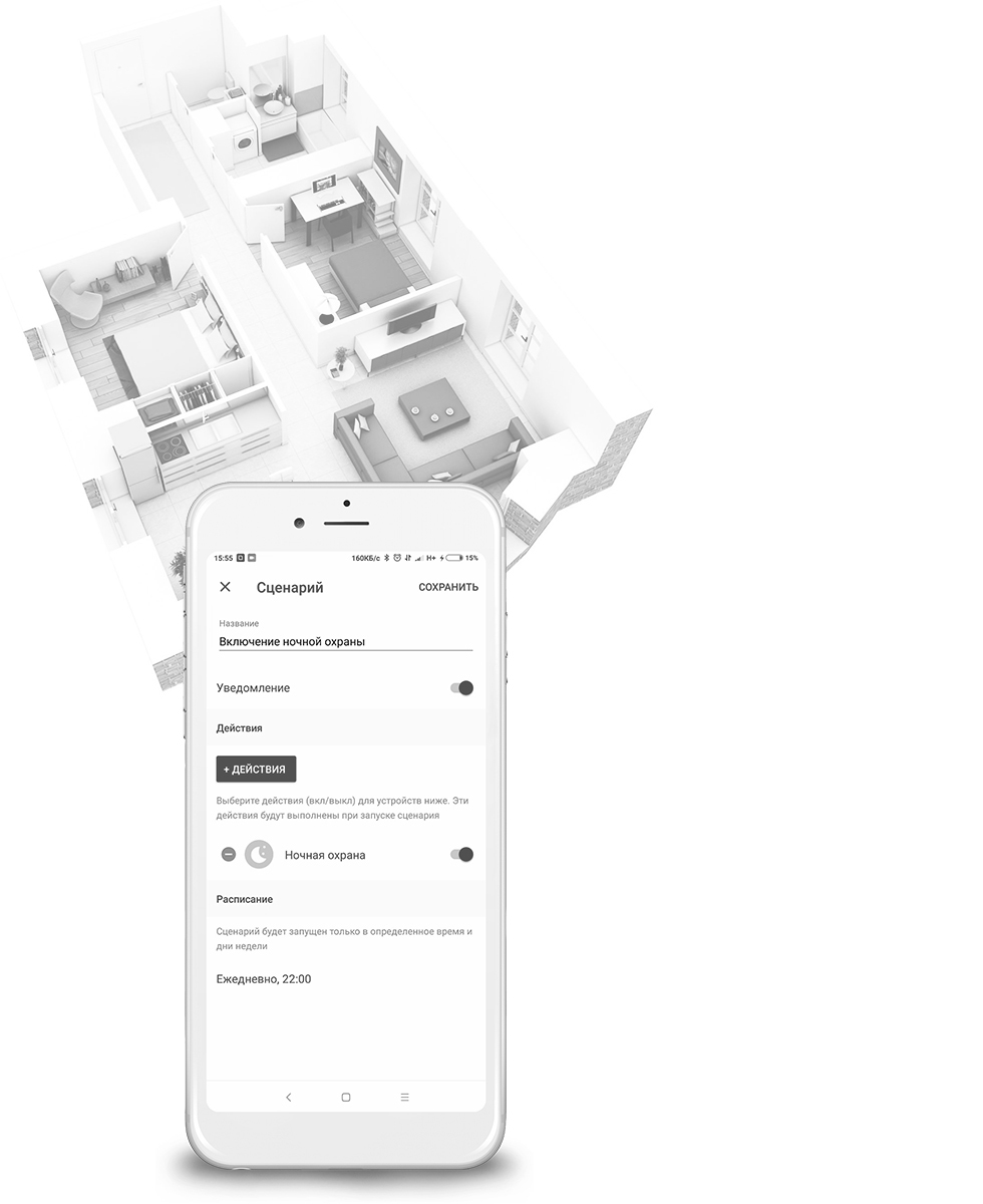 The Lvicom system allows you to control security alarm system, home appliances, lighting and engineering systems remotely from anywhere in the world through your smartphone or automatically via scripts and schedules.